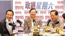 左起:田北俊、譚耀宗、何俊仁出席電台節目,對封咪事件表達意見。(趙焜崗 攝)