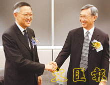 李國能(左)及張信剛(右)均歡迎中大成立法律學院。(李志樑 攝)