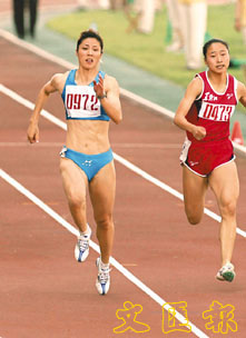 亞洲女飛人李雪梅(左)在選拔賽上以十一秒四二的成績獲得冠軍。