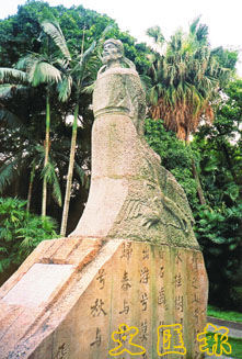 入門處有大花圃,之後是柳宗元石雕立像。雕像果然顯出這位有獨立見地、不屈從權貴的思想家、文學家的風釆。石雕不落俗套,在林蔭襯托下更顯出這位關心民間疾苦的學者的傲骨。