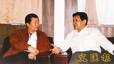 27日晚,陝西省常務副省長陳德銘(右一)在他的辦公室親切會見本報社長張國良。 (楊樹梅 攝)