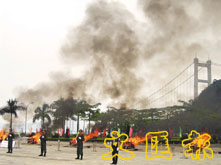3日,廣東有關部門在虎門現場銷毀了165公斤毒品,以紀念民族英雄林則徐虎門銷煙165周年。廣東虎門現在是全國禁毒教育基地。(中新社)