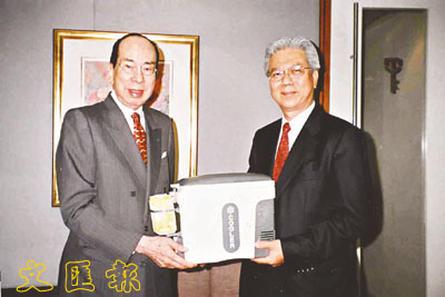香港友好協進會李東海主席接受袁仕傑永遠名譽會長捐贈汽車冷熱冰箱。
