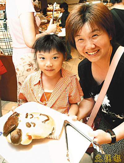 銅鑼灣崇光地庫的著名麵包店DONQ,由昨天起推出應節食品「爸爸麵包」,形狀趣致,既有架上眼鏡,亦有些蓄上小鬍子的製品,吸引不少孩童選購,以表達對父親的一番心意。 (潘達文 攝)
