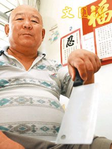 劉榮寶展示當年傷害老婆的菜刀。(李志樑 攝)
