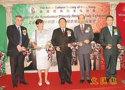 【本報訊】(記者 張萍)香港意大利文化協會主辦的「文藝復興的華麗——意大利皇室盛裝」展覽會,日前在香港國際金融中心開幕。民政事務局局長何志平、意大利總領事Gabriella Meneghello、意大利文化協會會長李東海為開幕典禮剪綵。
