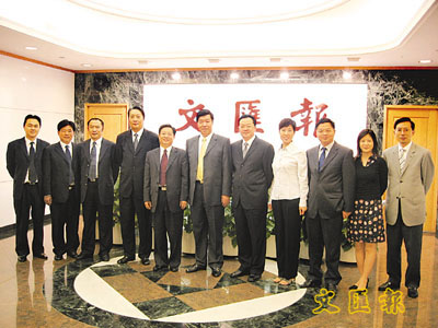 湖南省長沙市政府副秘書長黃雄姿(左五)、長沙市對外貿易經濟合作局局長楊懿文(右五)、長沙市經濟委員會副主任趙躍駟(左四)等一行八人於昨日到訪本報,受到本報總經理仇學忠先生等的熱情接待。
