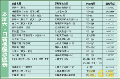 本周六、日新樓盤參觀表 (圖)