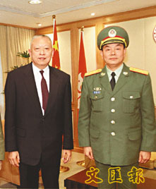 劉鎮武曾任駐港部隊司令員,為港人所熟悉。圖為劉鎮武與特首董建華合照。(資料圖片)