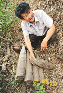 昨日10時,記者在正在挖掘日軍遺留炮彈的齊齊哈爾市昂昂溪區頭站村得到消息,稱距此約10公里外的齊齊哈爾市昂昂溪區湯池鎮老三間房屯也有17枚炮彈,已經被挖掘出來近30年。協助日方清理頭站村日軍遺棄生化武器的中方工作人員透露,初步估計,這十多枚炮彈是侵華日軍遺棄在華的毒劑彈。