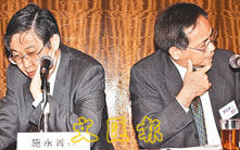 「香港樓市真正復甦嗎?」研討會上施永青與葉國謙面左左,不知有何啟示。 (李志樑 攝)