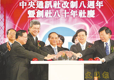 「立法院長」王金平(右四)1日參加中央社改制8周年暨創社80年社慶典禮。(中央社)