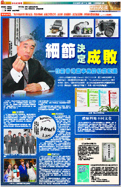 授權管理原來早已植根於佳能的企業文化中。總部在日本的佳能,分公司遍布全球,都能享有獨立自主,鼓勵當地員工自行決策之餘,更提供充裕的發揮空間。「藉此,員工得以成長,企業亦因而受惠,這是一個雙贏的政策,是企業成功的關鍵。」他說。