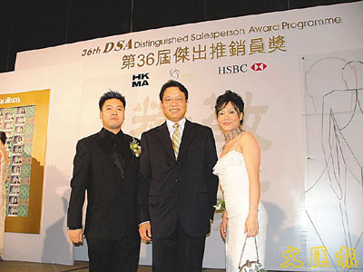 中原(工商舖)猛將游院玲(右)貴為應屆 (第36屆)傑出推銷員獎得主,昨日無懼風雨,堅持送票,促成旺角砵蘭街建材段舖位。 (資料圖片)