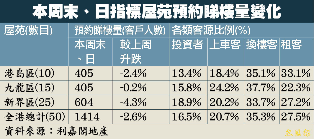 本周末、日指標屋苑預約睇樓量變化 (圖)