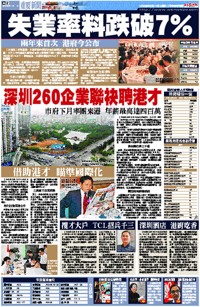 自2002年7月起,本港失業率持續保持在7%或以上,03年中更一度升至8.87%的高位,不過政府消息透露,今年4至6月的失業率會輕微下調0.1個百分點,報6.9%,整體失業率有輕微下降趨勢。
