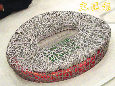 由瑞士赫札和迪繆隆設計公司與中國建築設計研究員合作的北京奧運主體育館設計方案。