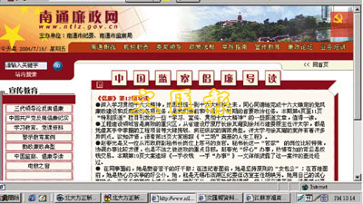 江蘇南通市設立廉政網,提供當地反腐訊息。
