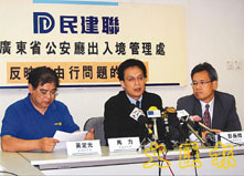 民建聯主席馬力(中)與廣東省公安廳出入境官員會晤,雙方就個人遊的問題交換意見。(沈清麗 攝)