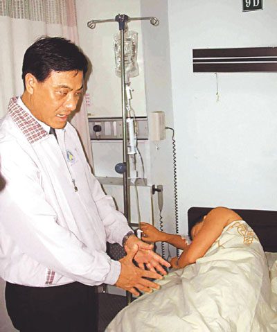 台「內政部長」蘇嘉全到醫院探望受傷警員。(中央社)