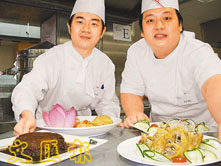 黃嘉輝(左)和賴國滕分別奪得「創意素菜」和「素菜點心」的冠軍。(沈清麗 攝 )
