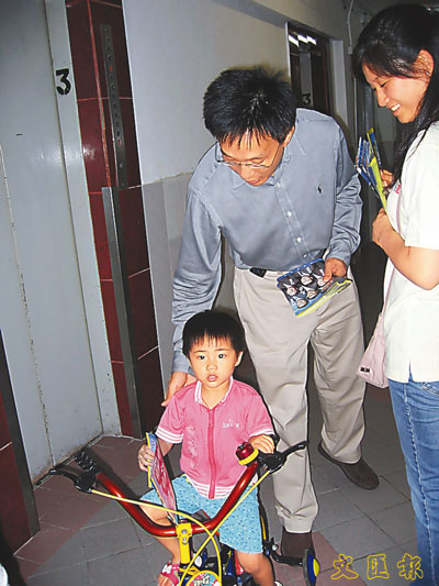 馬力連小朋友也不放過,看來他的拉票功夫「無孔不入」。