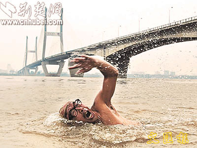 據老教授說,天氣的因素給他這次的橫渡帶來了很多的麻煩,江水比較冷,加上年齡的原因,他在水中腳趾抽筋10多次,在這種情況下,他便迅速的減慢速度,在水中用手揉捏腳部,使他能夠一次次脫離險境。