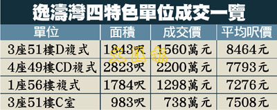 【本報訊】美聯物業助理營業董事曾志光表示,自嘉亨灣連日來獲得買家以高價預留單位後,樓市氣氛非常熾熱,毗鄰的豪宅屋苑逸濤灣,餘下之四個特色單位昨日再次重推,隨即告全數售罄(見表),其中一對兄弟更剛經該行斥資近3800萬元,分別購入一個複式相連巨無霸及一個頂層複式單位,作為自住用途。