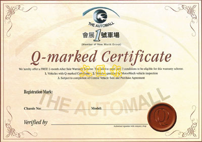 場內所有附Q嘜證書的車輛,均可享壹號車場提供的60天或5,000公里免費保用。詳情請參閱場內宣傳冊。