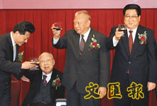 董建華、高祀仁、李剛向徐四民祝酒。 (潘達文 攝)