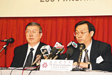 戎光道(右)預料今年集團原油加工量將達900萬噸。旁為韓志浩。 (張偉民 攝)