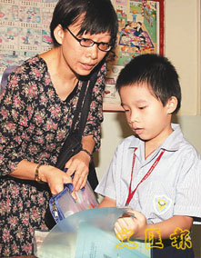 林太陪兒子由長洲往跑馬地寶覺小學上課。