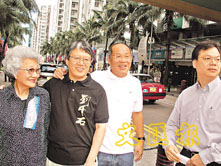 演藝界人士岑建勳(右二)和紫羅蓮(左一)到場支持劉千石。 (莊海源 攝)