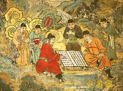 山西廣勝寺水神廟古壁畫 下棋圖(元代)