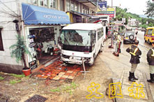肇事警方小巴撞上行人路。
