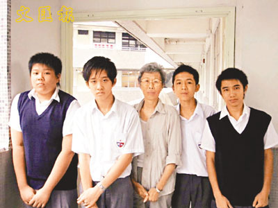 鍾維慈回校探望舊日的學生李振邦、蕭文坤、張明達及梁偉樂。