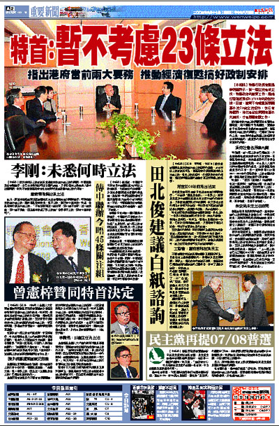 [2004-09-17] 特首:暫不考慮23條立法 放大圖片