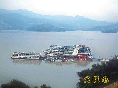三峽大壩前的「高峽平湖」風光,與人們想像中的景觀差距頗大。(本報重慶傳真)