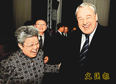 20日,在俄羅斯伊爾庫茨克州首府伊爾庫茨克進行訪問的中國國務院副總理吳儀(左)會見伊爾庫茨克州州長戈沃林。 (新華社)
