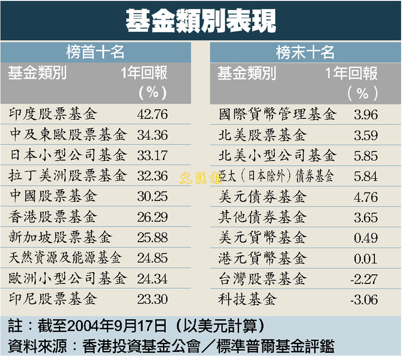 [2004-09-24] 基金類別表現