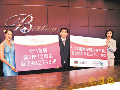 黃氏稱,由於市場加息八分一厘,為此發展商與渣打銀行合作推出低息付款優惠,希望可抵銷加息升幅。首兩年利率為P減3.38厘,以目前最優惠利率5.125厘計算,所以首兩年供款利率為1.745厘,其後全期P減2.775厘;首兩年一按延期供款,如選擇發展商提供之二按,首兩年可獲免息免供,利率為P加1厘。