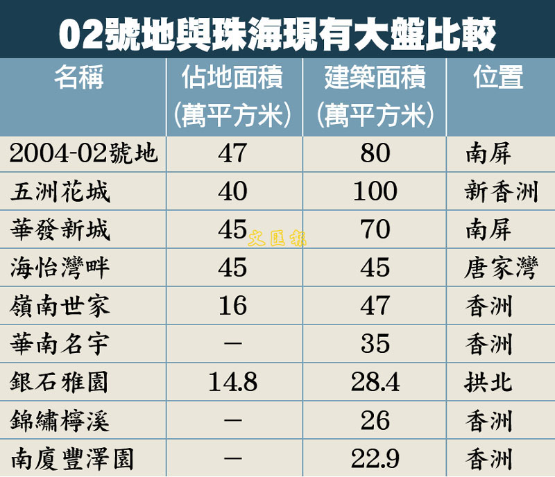 02號地與珠海現有大盤比較 (圖)