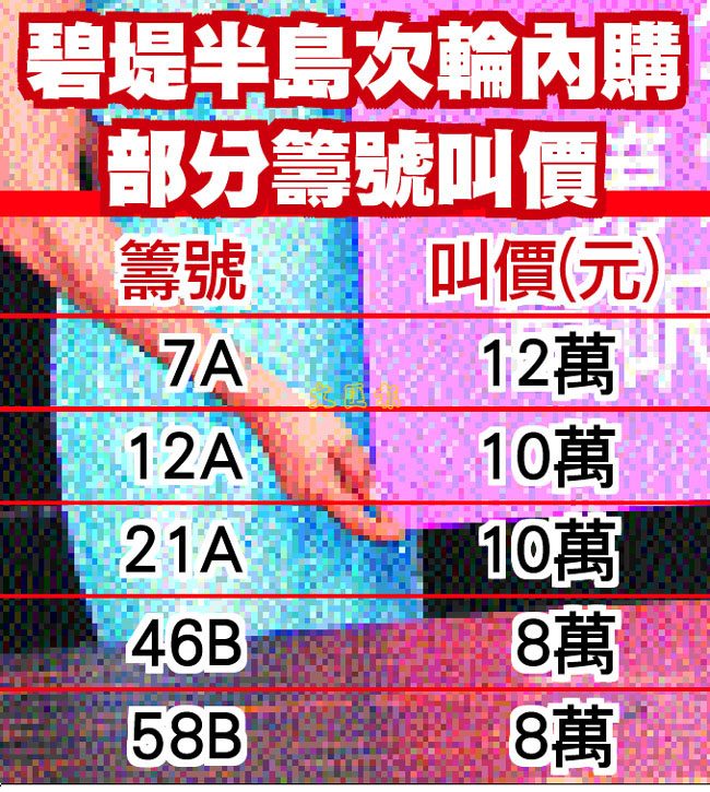 碧堤半島次輪內購部分籌號叫價 (圖)