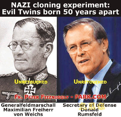布什的官員也被網民指摘,美防長被人諷刺為是「相隔50年出生的邪惡孿生子」。 (網上圖片)