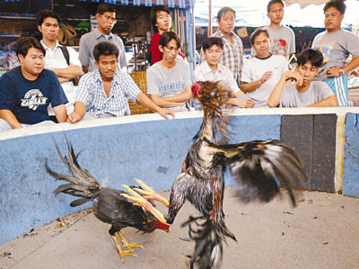 曼谷市場上仍有鬥雞活動。 (法新社)