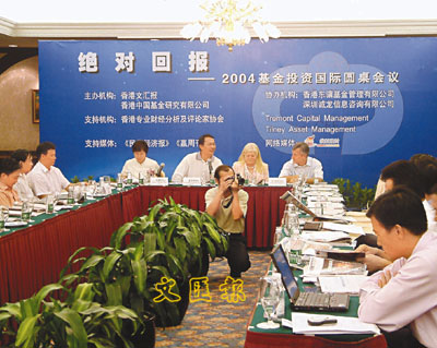 「2004基金投資國際圓桌會議」由香港文匯報與中國基金研究有限公司和誠龍信息諮詢有限公司共同舉辦。來自海外與境外的基金界專家與業界代表將圍繞價值投資方法是否可以在中國基金投資領域得以發揮等方面進行分析,並對「絕對回報」等熱門話題進行探討。