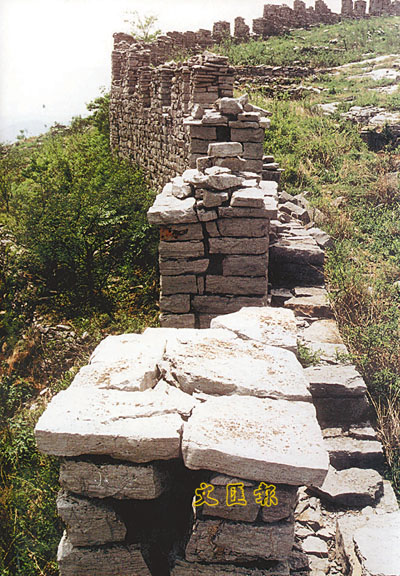 村東西兩側山巒起伏,各有一段長城遺址沿山脊蜿蜒而上,儘管已坍為隆起的土石壟,但城牆痕跡仍依稀可辨。