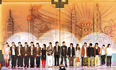 為國慶文藝晚會傾力演出的歌星同台高歌。