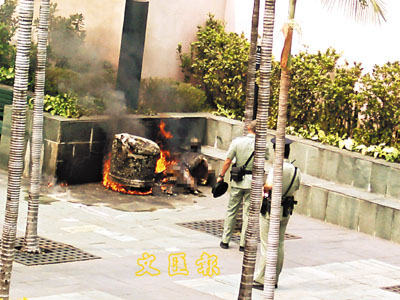昨日下午1時35分,老翁在公園內飲酒後,走到其中的一個角落以火水淋滿全身引火自焚,有人發覺,惟已來不及阻止,事主迅速起火,頓成火人,並冒出大量黑煙。