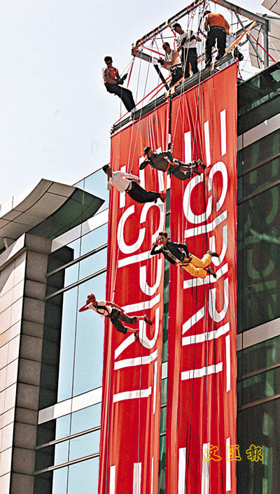 Vertical Catwalk是近年創新表演藝術的一種,結合了音樂、舞蹈編排、攀山技巧和高速下降等動作。9位來自世界各地、經專人特別訓練的模特兒,昨日便在尖沙咀美麗華商場為一個高空時裝表演正式揭開序幕,讓市民大開眼界。